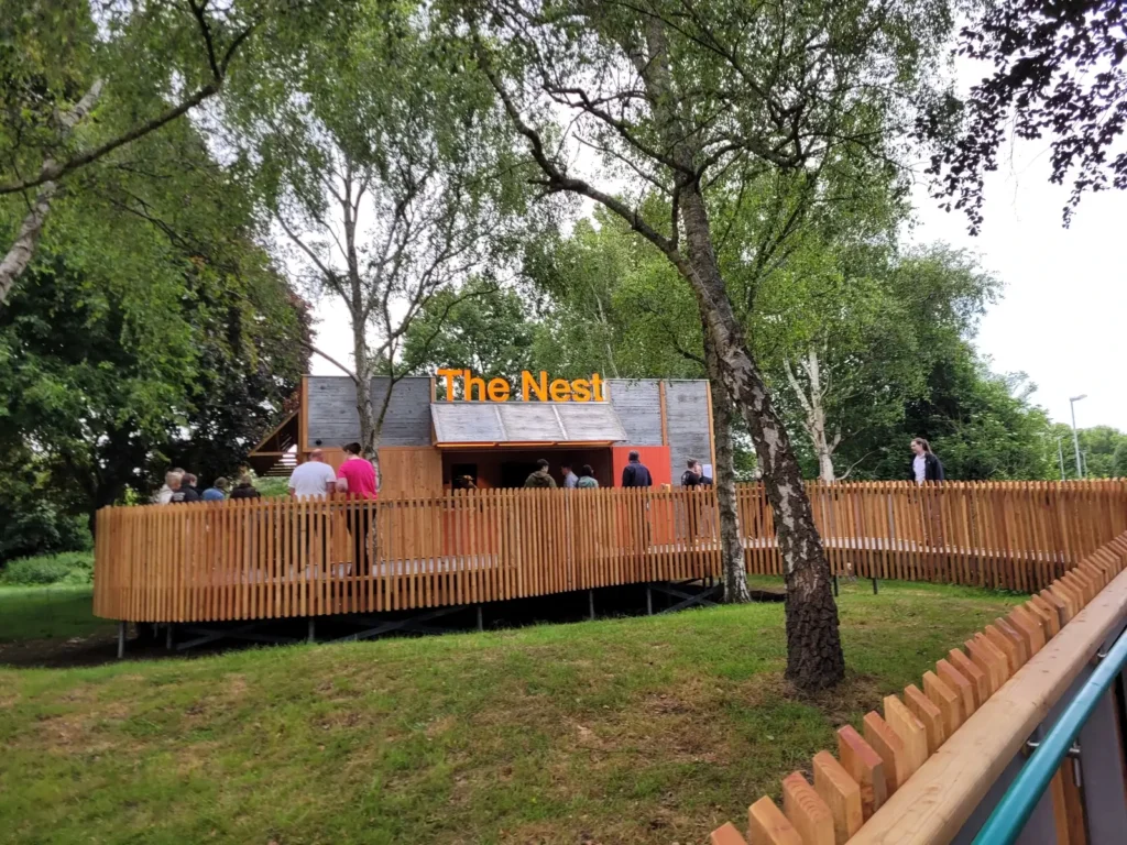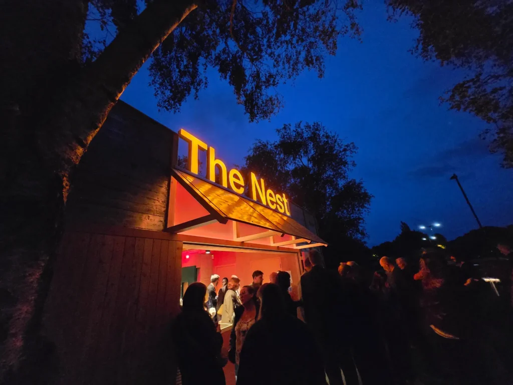 The story of The Nest begins long before it ever arrived in Chichester. Originally created in 2017, the structure was designed and built using the ModTruss modular building system (a lightweight, reusable framework) complimented with Triple e developed curtain walling system. Bringing the flexibility of Meccano to full-scale architecture. The venue made its debut at The ABTT theatre show in 2017 and was then transported to Edinburgh for the Edinburgh Festival. Following on from the success of this moveable venue, the structure then spent intervening period at Pleasance, London for ten months of the year and two months in Edinburgh for the festival. The demountable pop-up space, offering flexible performance infrastructure for both the Edinburgh Festival and London’s West End. Press coverage from the time (see Triple E press release and mondo-dr article) praised the project’s sustainable approach, rapid assembly, and innovative modularity.