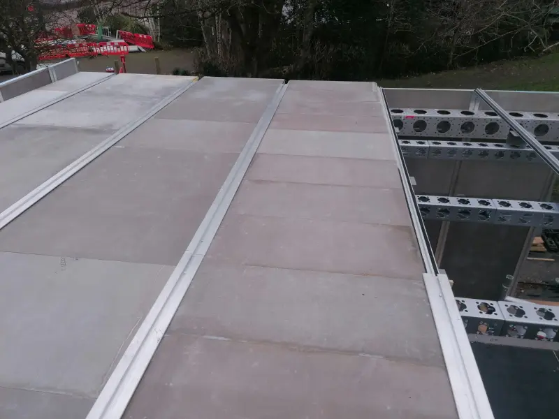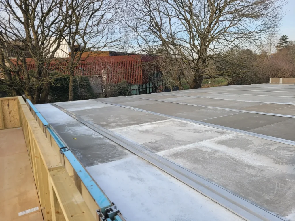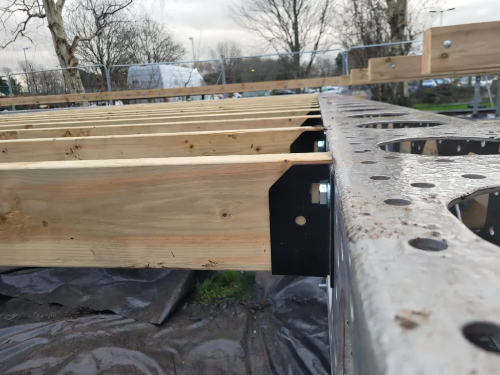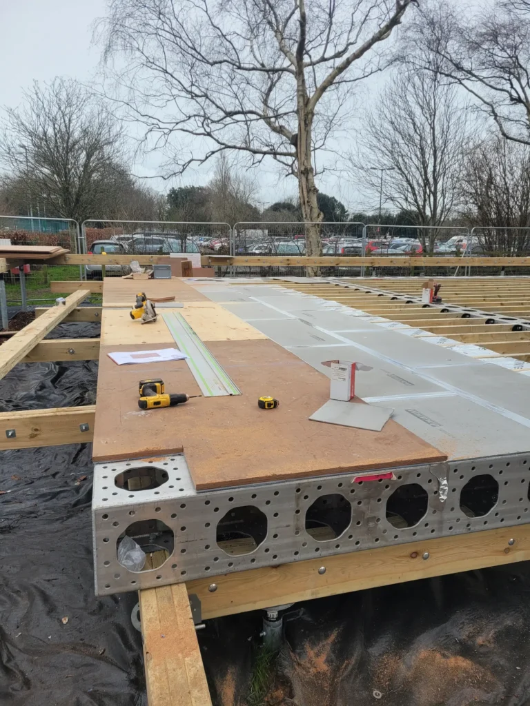 - No use of Heavy plant to protect the root protection areas of the tree surrounding the site: Building a modular structure without the use of heavy plant presents a unique challenge, as it requires precise planning and coordination to ensure that all components are eƯiciently assembled without the assistance of large machinery. With roof beams that weigh in excess of 400 kg – This demands a high level of manual labour, specialised tools, and careful consideration of space and logistics to ensure the project remains on schedule and within budget.