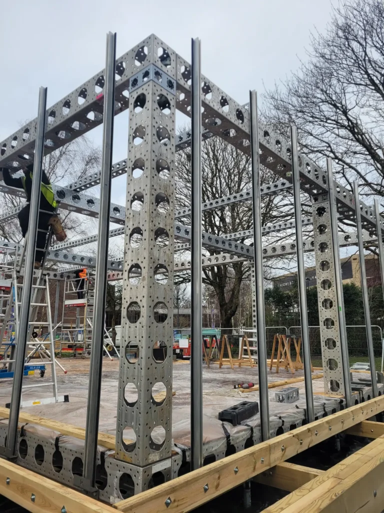 - Structural Assembly: Full installation of the ModTruss framework, using original components with updated fixing and bracing strategies where necessary to accommodate the new design.